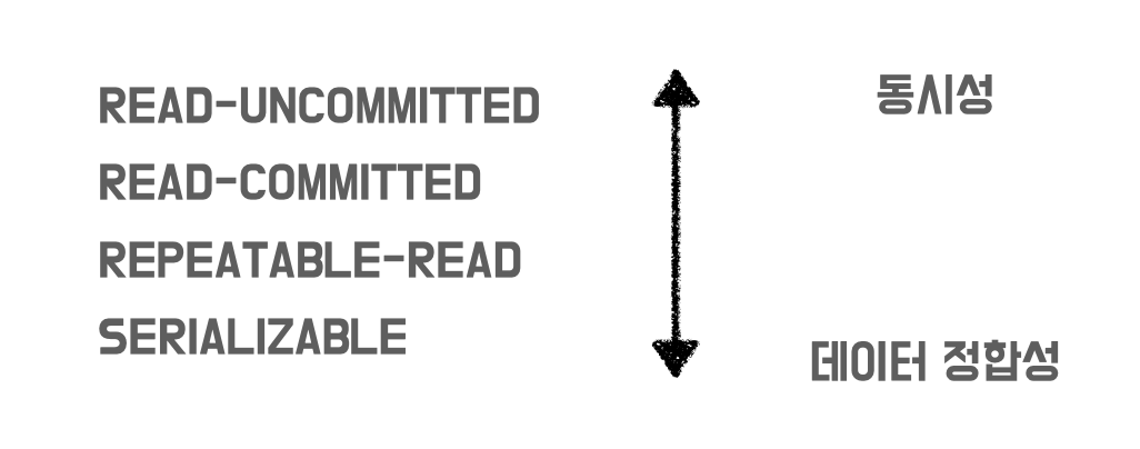 밑으로 갈수록 격리 수준이 높아지지만, 성능이 떨어진다.